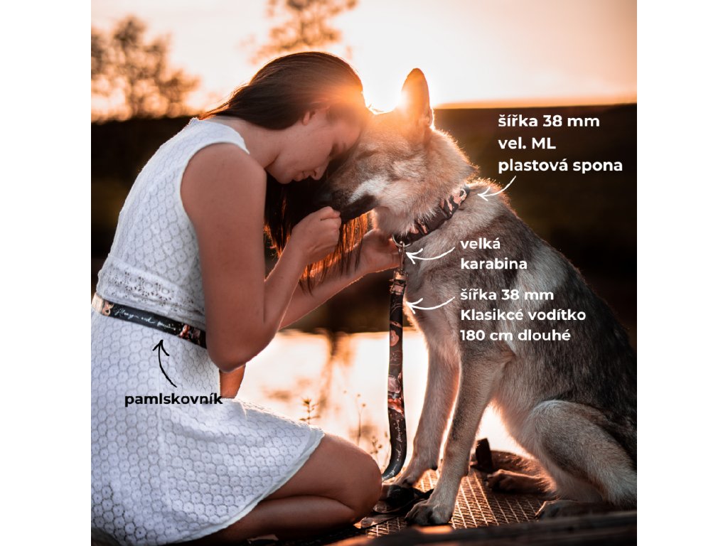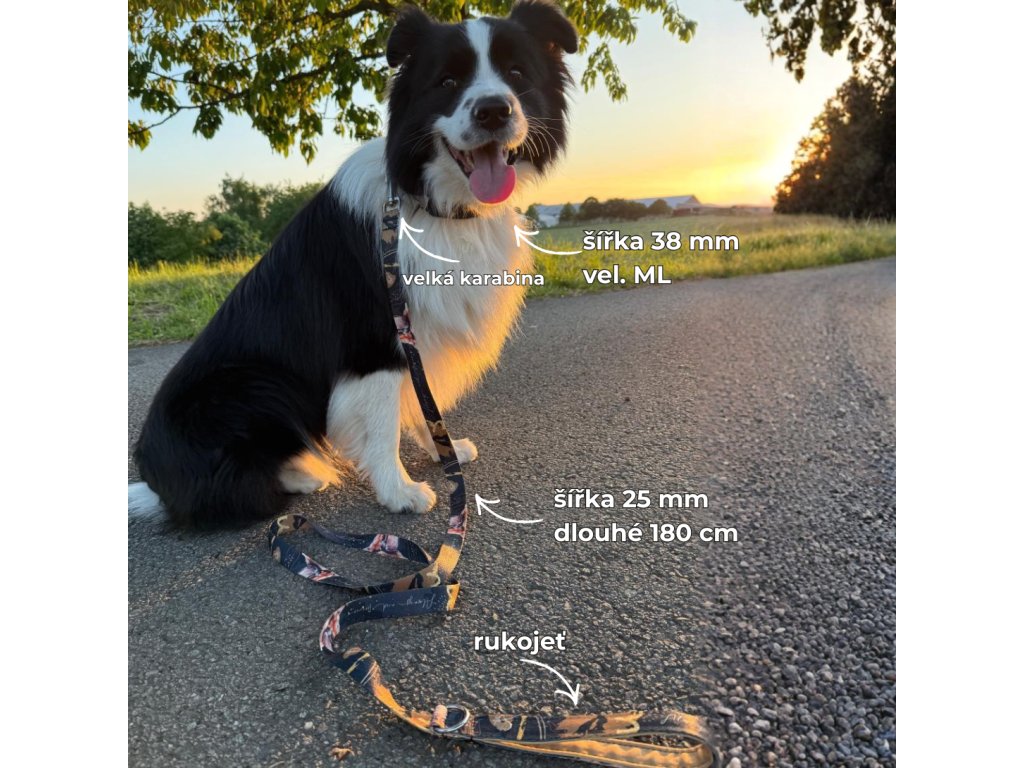 Ručně šitý set obojku a vodítka pro psa + jmenovka zdarma