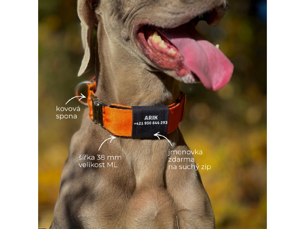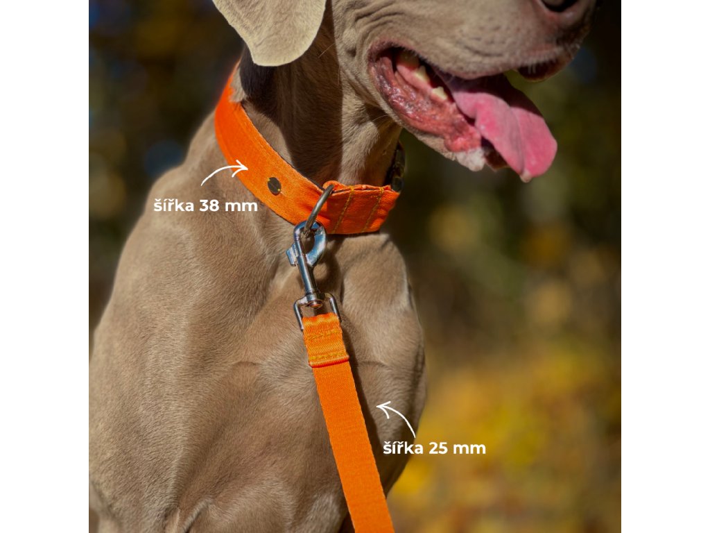 Obojek a klasické vodítko pro psa | Oranžový | jmenovka zdarma