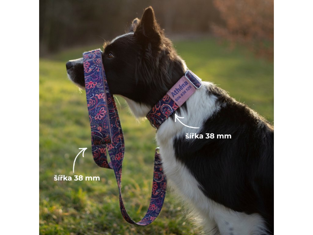Ručně šitý set obojku a vodítka pro psa + jmenovka zdarma