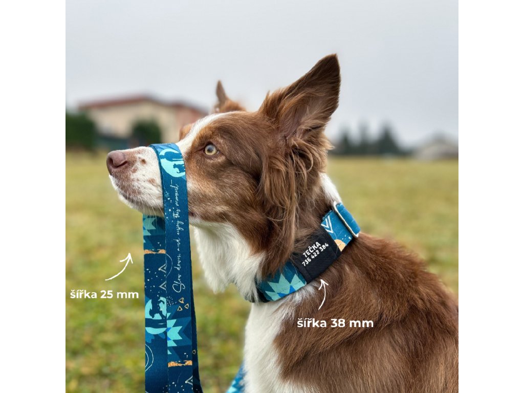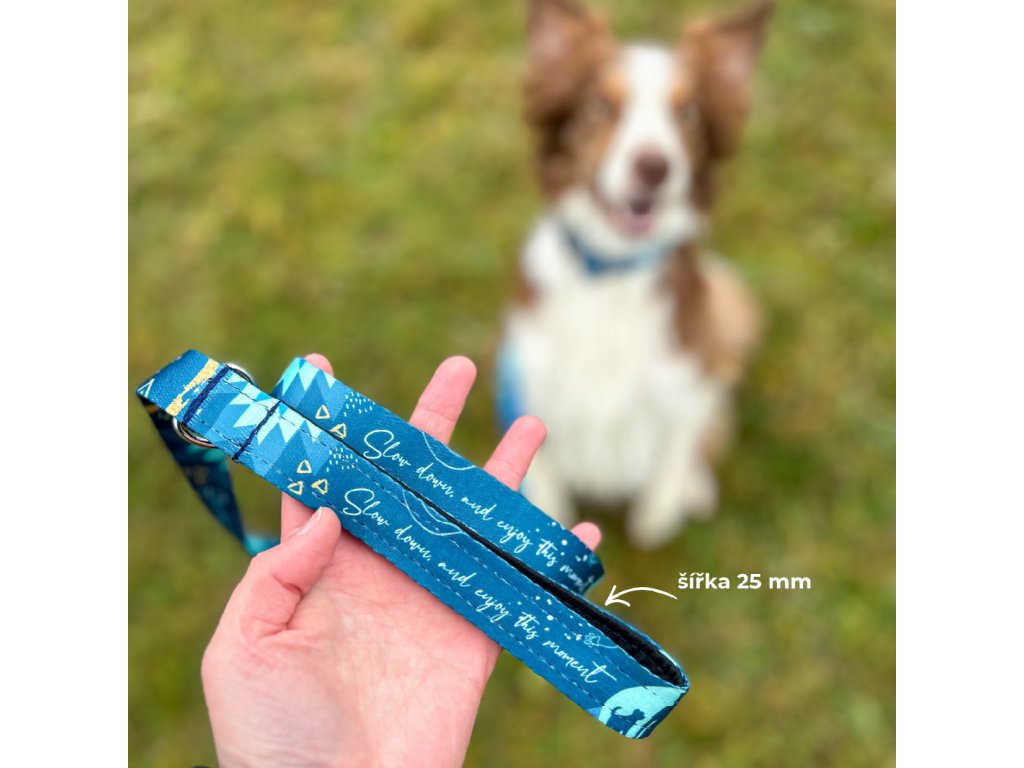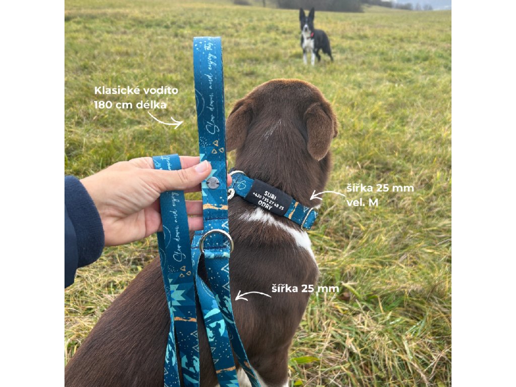 Obojek a klasické vodítko pro psa | Slow down modré | jmenovka zdarma