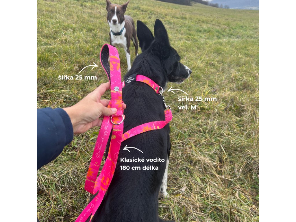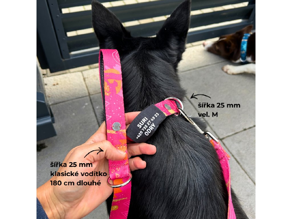 Obojek a klasické vodítko pro psa | Slow down růžová | jmenovka zdarma