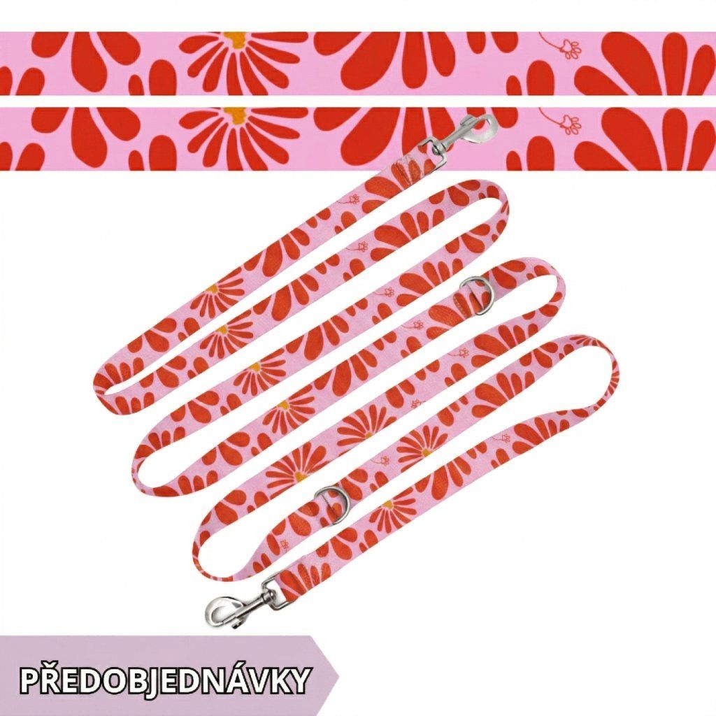 Obojek a přepínací vodítko pro psa | Růžové květy| jmenovka zdarma