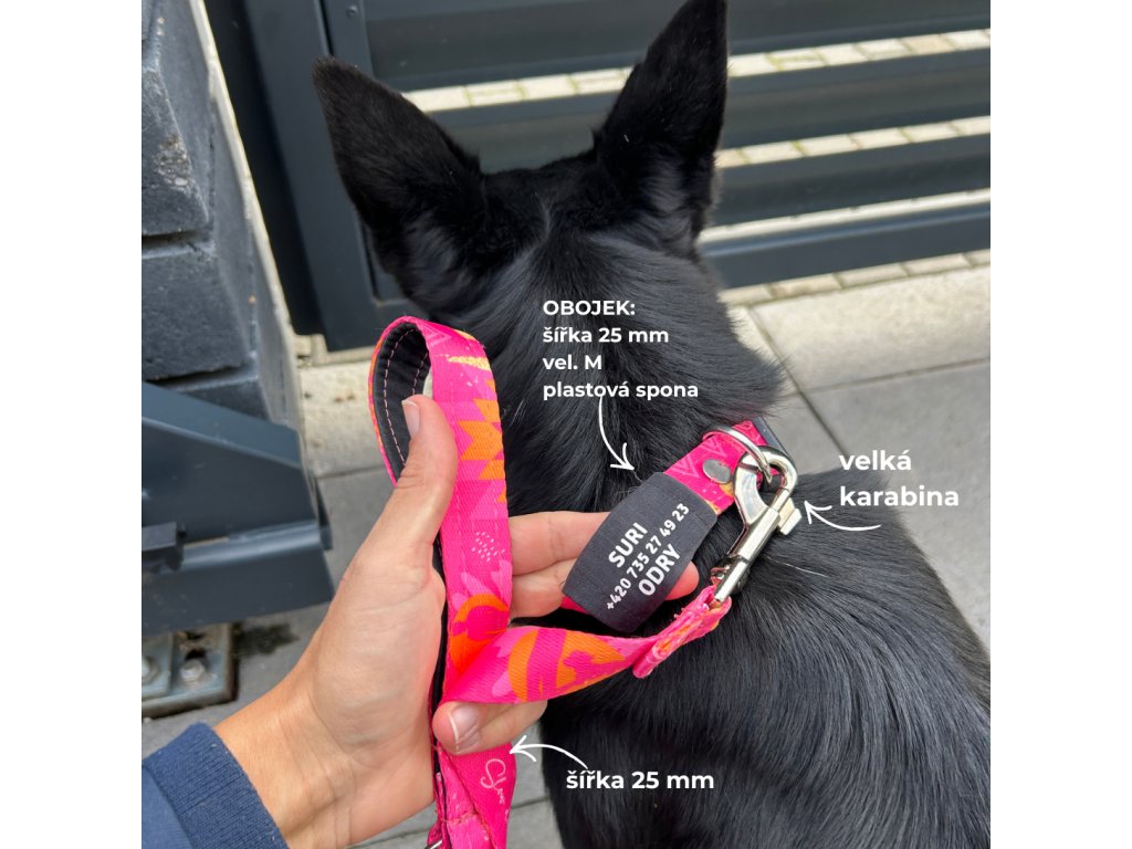 Obojek a přepínací vodítko pro psa | Slow down Růžové | jmenovka zdarma