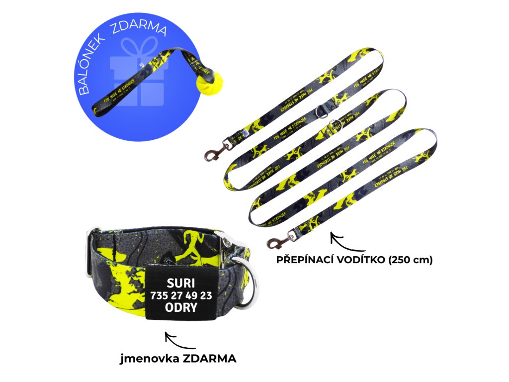 Obojek a přepínací vodítko pro psa | stronger | jmenovka zdarma