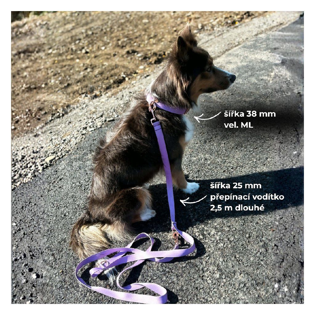 Obojek je ušitý z kvalitní pevné stuhy, která je podšitá měkkým softshellem, aby byl pro psa pohodlný a nikde netlačil.