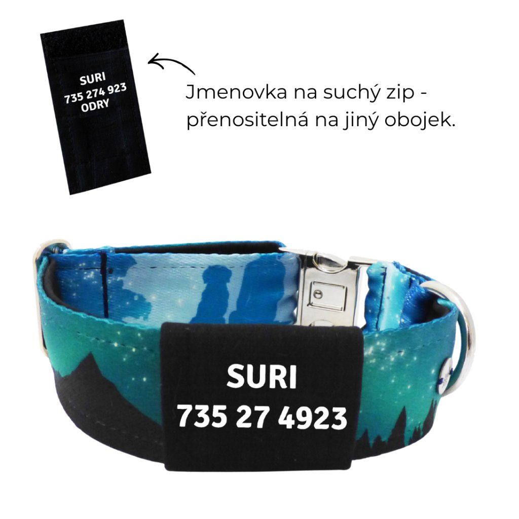 ✅ Jméno a číslo přímo na obojku (jmenovka na suchý zip, která se dá sundat)