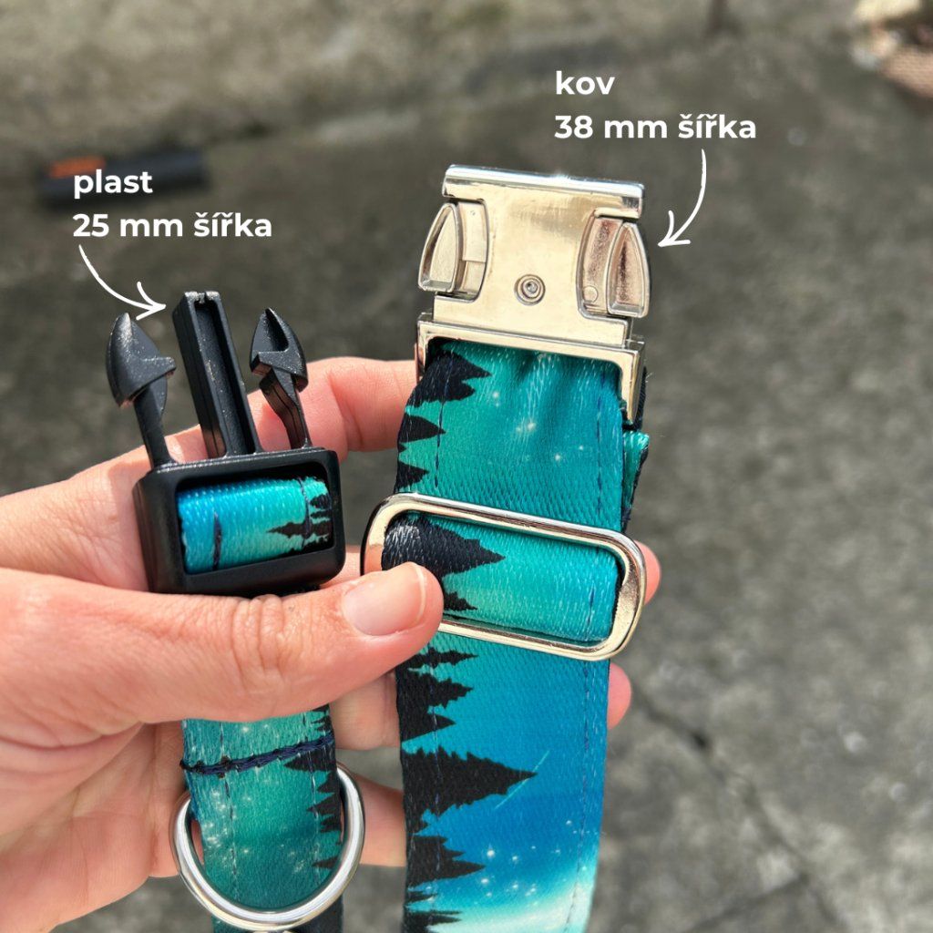 Obojek je ušitý z kvalitní pevné stuhy, která je podšitá měkkým softshellem, aby byl pro psa pohodlný a nikde netlačil.