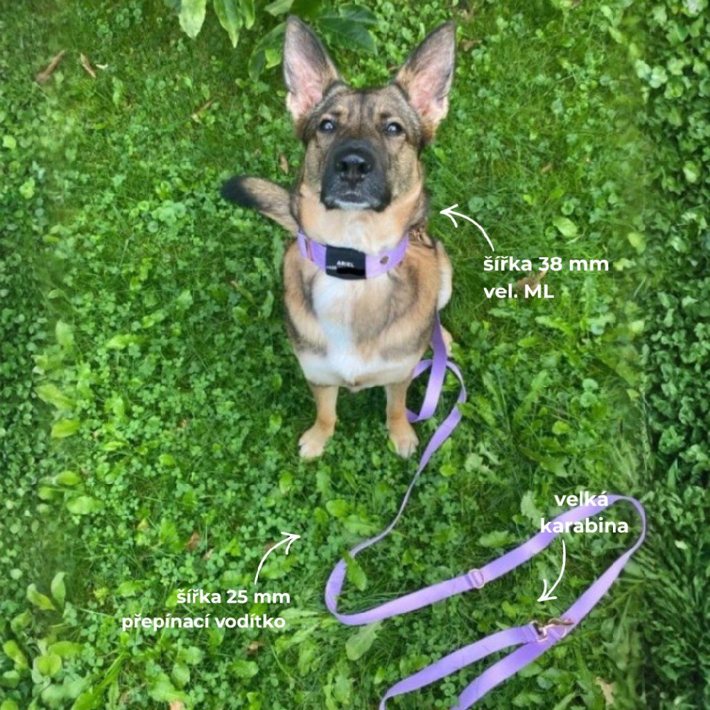 Obojek je ušitý z kvalitní pevné stuhy, která je podšitá měkkým softshellem, aby byl pro psa pohodlný a nikde netlačil.