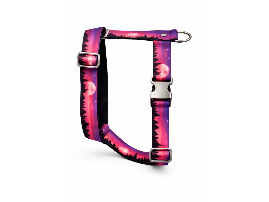 MATERIÁL: postroj je ušitý z kvalitní stuhy, která je podšitá softshellem do tvaru Y, aby psovi nebránil ve správném pohybu. Máme dvě šířky postrojů 25 mm a 38 mm. Kovová spona je těžší, a je vhodná pro větší psy kteří mají sílu. Plastová spona je lehoučka, a hodí se pro štěňátka ale i dospělé psy.