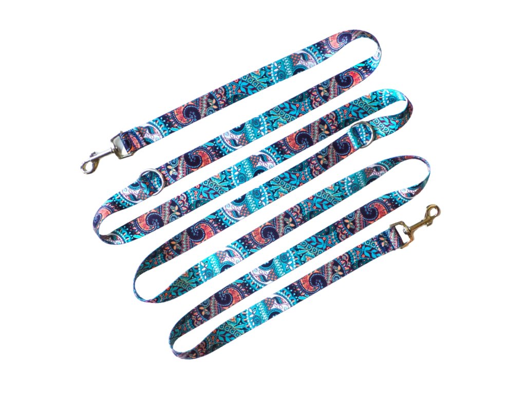 Přepínací vodítko má jednu velkou výhodu a to že jej můžete připnout přes ramena jako "kabelku" a ruce vám zůstanou volné. Nebo délku vodítka jednoduše změníte pomocí karabiny na velikost 250 cm, 220 cm a 150 cm kde vám vznikne rukojeť. Veškeré přepínací vodítka designově ladí s obojky a hračkami z naší nabídky.