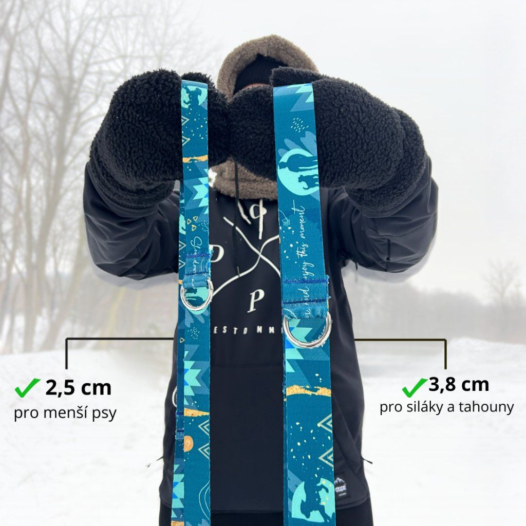 ✔️ vodítko se připne kolem těla jako kabelka, a při venčení máme volné ruce