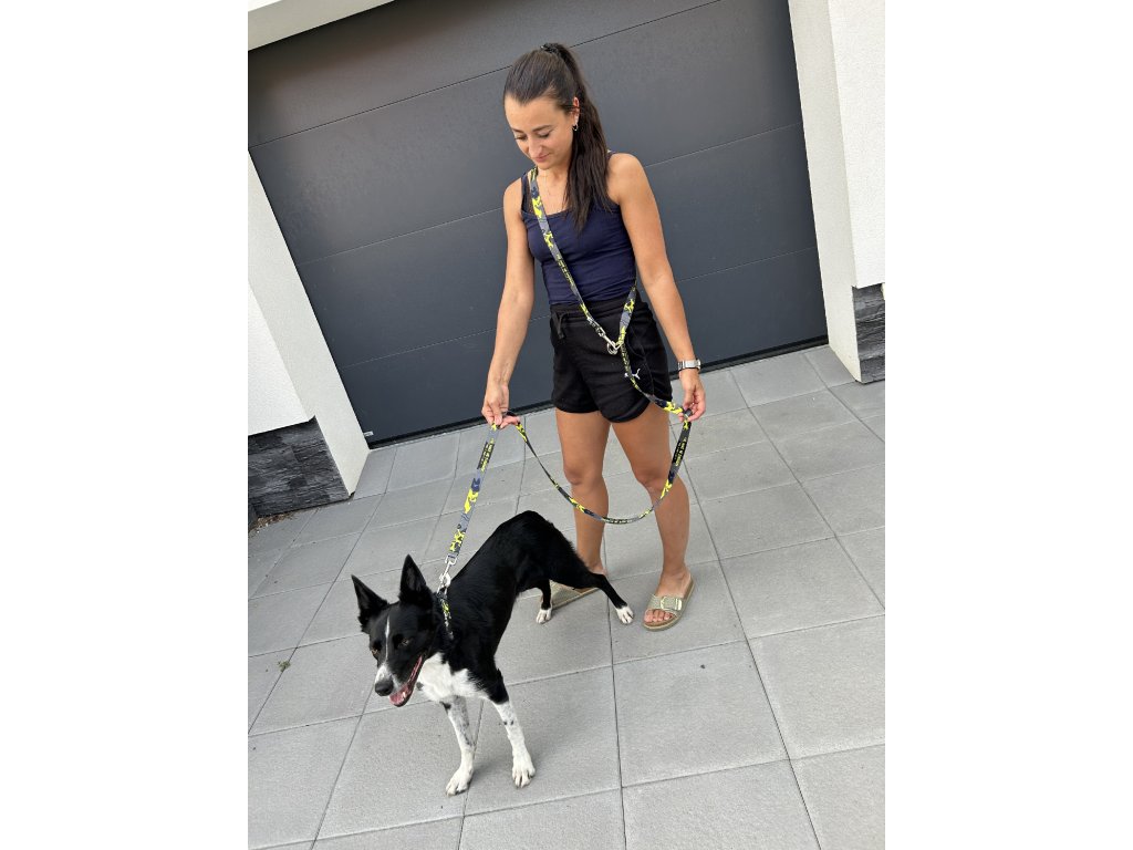 ✔️ vodítko se připne kolem těla jako kabelka, a při venčení máme volné ruce