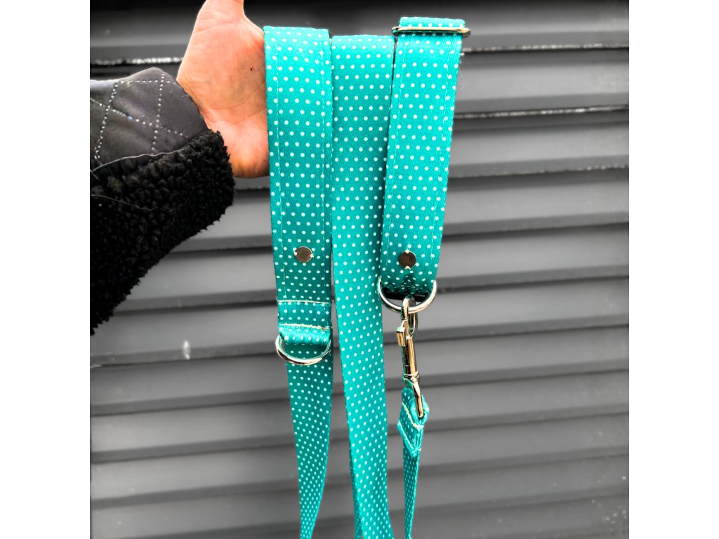 Přepínací vodítko má jednu velkou výhodu a to že jej můžete připnout přes ramena jako "kabelku" a ruce vám zůstanou volné. Nebo délku vodítka jednoduše změníte pomocí karabiny na velikost 250 cm, 220 cm a 150 cm kde vám vznikne rukojeť. Veškeré přepínací vodítka designově ladí s obojky a hračkami z naší nabídky.