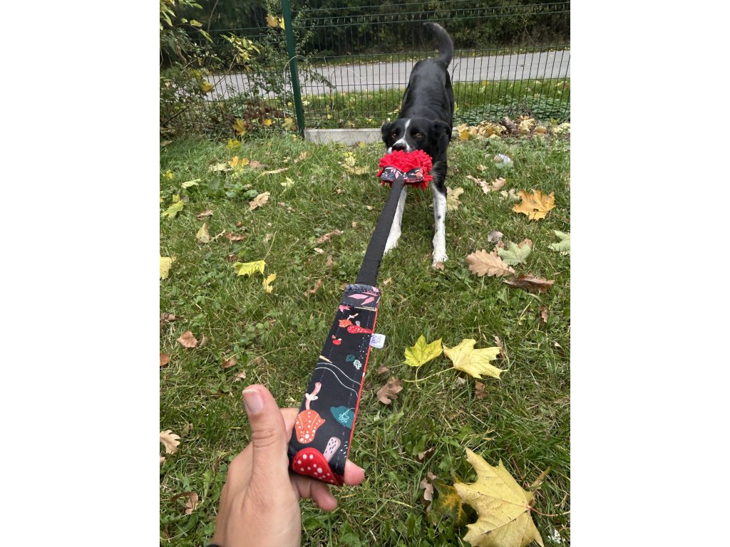 Přetahovadlo pro psa – mop s amortizérem muchomůrky