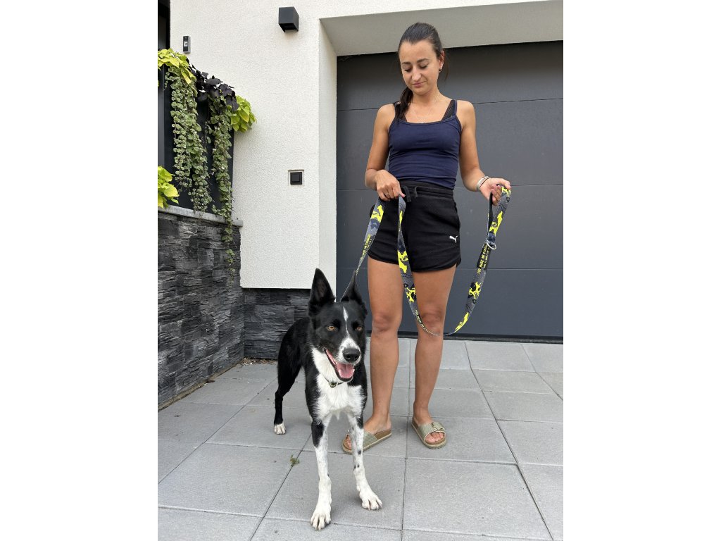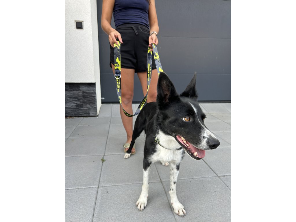 MATERIÁL: vodítko je ušité z kvalitní stuhy, která je podšitá softshellem. Klasické vodítko je dlouhé 180 cm a obsahuje rukojeť, která je podšitá softshellem.